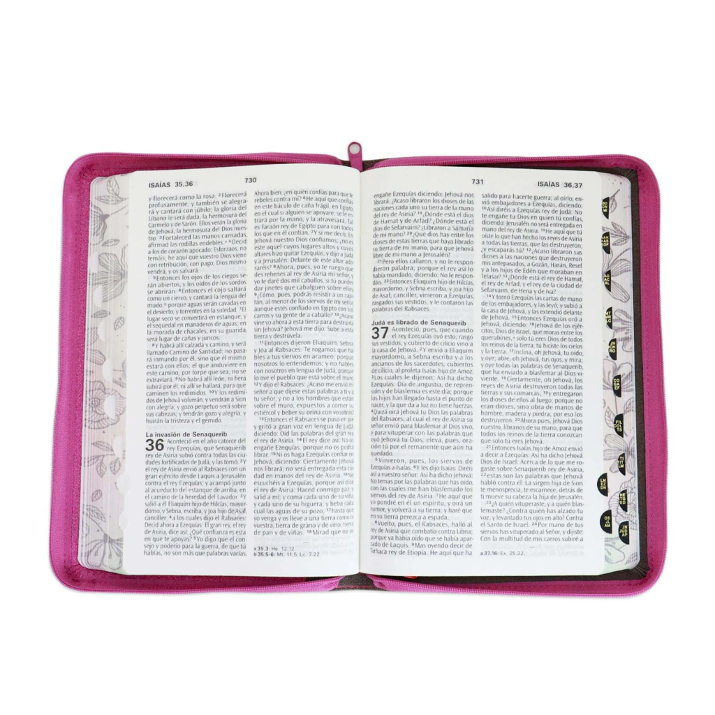Incluye una concordancia que facilitará tus estudios y reflexiones, convirtiéndola en una herramienta invaluable para tu crecimiento espiritual. Su vibrante color fucsia añade un toque de alegría y frescura a tu colección.