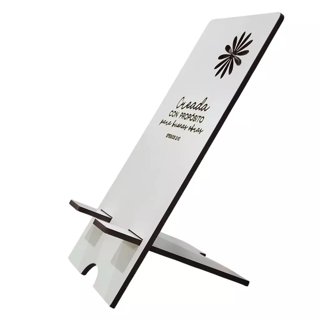 🎯 Apoya Celular MDF - Creada con Propósito (Blanco).